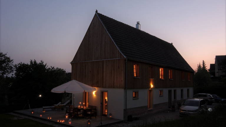 Das Landhaus Rathewalde - ein ehemaliges Bauerngehöft - um 1890 errichtet, wurde im Jahr 2016/17 von Grund auf sorgfältig saniert. Im Erdgeschoss befindet sich eine geräumige Ferienwohnung mit großzügiger Terrasse, inmitten von Wiesen.